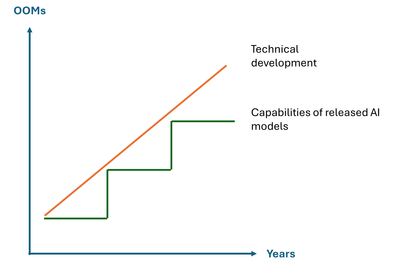 Combining the increase in compute with estimated algorithmic efficiencies, GPT-5 could be about 2 OOMs, or 100 times, more powerful than GPT-4. No one, not even OpenAI, knows exactly what this will mean. This potential leap is often overlooked, even in research papers in areas such as economics, implicitly assuming close to zero progress in AI development.