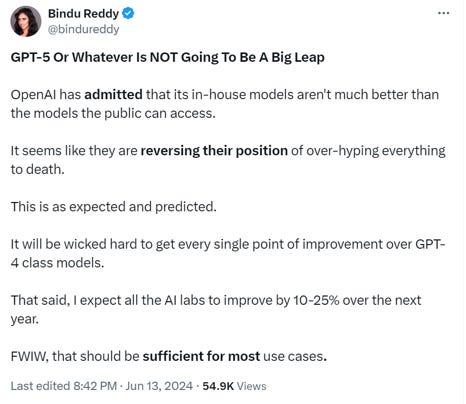Both Microsoft and OpenAI assert that there are no indications we are nearing an inflection point. Others argue that we have already passed it. Even prominent AI insiders have expressed low expectations for the development pace, often without substantial analysis, facts, or data to support their views, though.